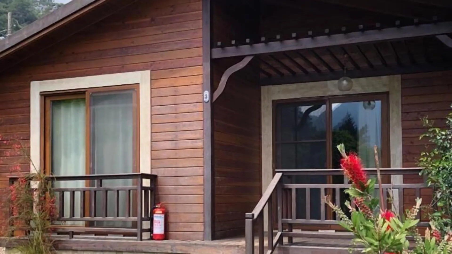 The Cirali accommodation features a sunny patio overlooking the mountain.